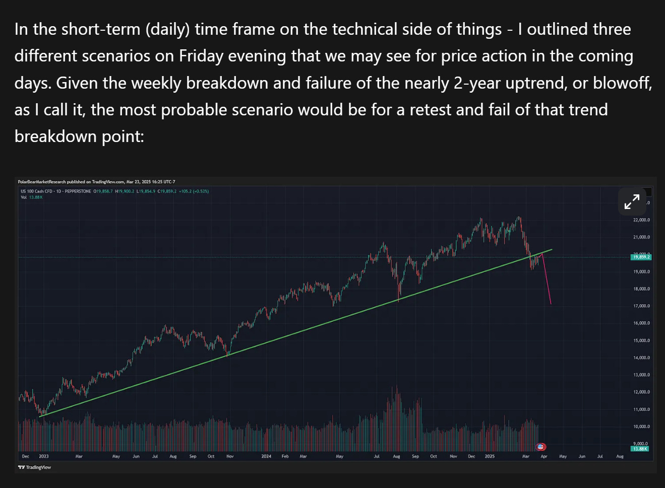 I expect things to remain quite volatile leading up to the Trump April 2nd tariff announcement even though I am not overweighting the impact of the headlines. The policy uncertainty is causing the Federal Reserve to shift into a wait-and-see mode as measured by their comments over the past two weeks - which has driven further ‘spook’ in equities (high beta ones in particular). There still hasn’t been a capitulation moment that would be indicative of the end of a more significant impulsive wave - and we were stuck in a distribution pattern for nearly two weeks following the large move down in late February in early March - that gave the Nasdaq nearly a 15% haircut. This week ahead there’s a lot of macro data hitting the tape and that will amplify market action, along with Trump tariffs, and growing investor uncertainty. One thing I am growing more confident in our ability to forecast is the fact that market has fundamentally broken the uptrend or ‘blowoff’ - as I’ve defined it as’ from early 2023 to present - and the Bessent/Powell backdrop is considerably different than the the Yellen/Powell/Biden accommodative BTFP era. The Trump Risk Matrix has kicked into overdrive, and we find ourselves in a very different backdrop than 2023 and 2024… Let’s dive into the data, technicals, internals, risks, Japanese data, and more below.