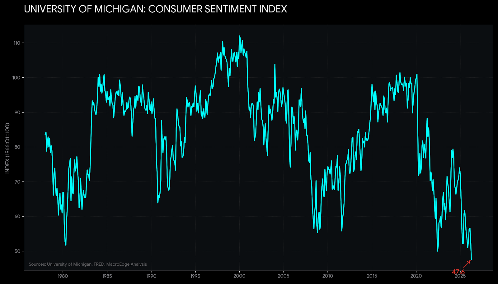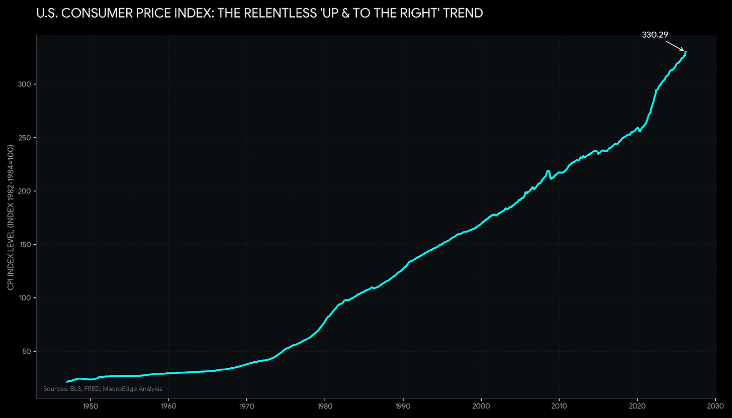 It’s still evening on PST as I write the latest Redeye Macro Note, and we’re going to cover a brief update on the CPI report from this morning, as well as look at the latest UMich Consumer Sentiment data, which dipped to another all-time low under the current Administration. We continue to reside in very bizarre economic times - where we’re watching the devolution of the 80% back into a pre-1950s economy as things like the chance of a retirement evaporate, while the asset class continues to benefit from nominal asset appreciation. Today’s inflation report is further evidence of what we have been calling out for months in that the *deflationistas* are grasping for straws and seeking out a ghost of deflation that simply does not exist in the current macro backdrop. Each and every single Administration does all it can to keep nominal inflation up and to the right - and this one has certainly been no different. While Y/Y inflation has decelerated, with the Strait of Hormuz still closed (which we’ll talk about below), we’re going to start seeing broader impacts next week in East Asia and the following in Europe with things like fuel supply, fertilizer supply, and more.