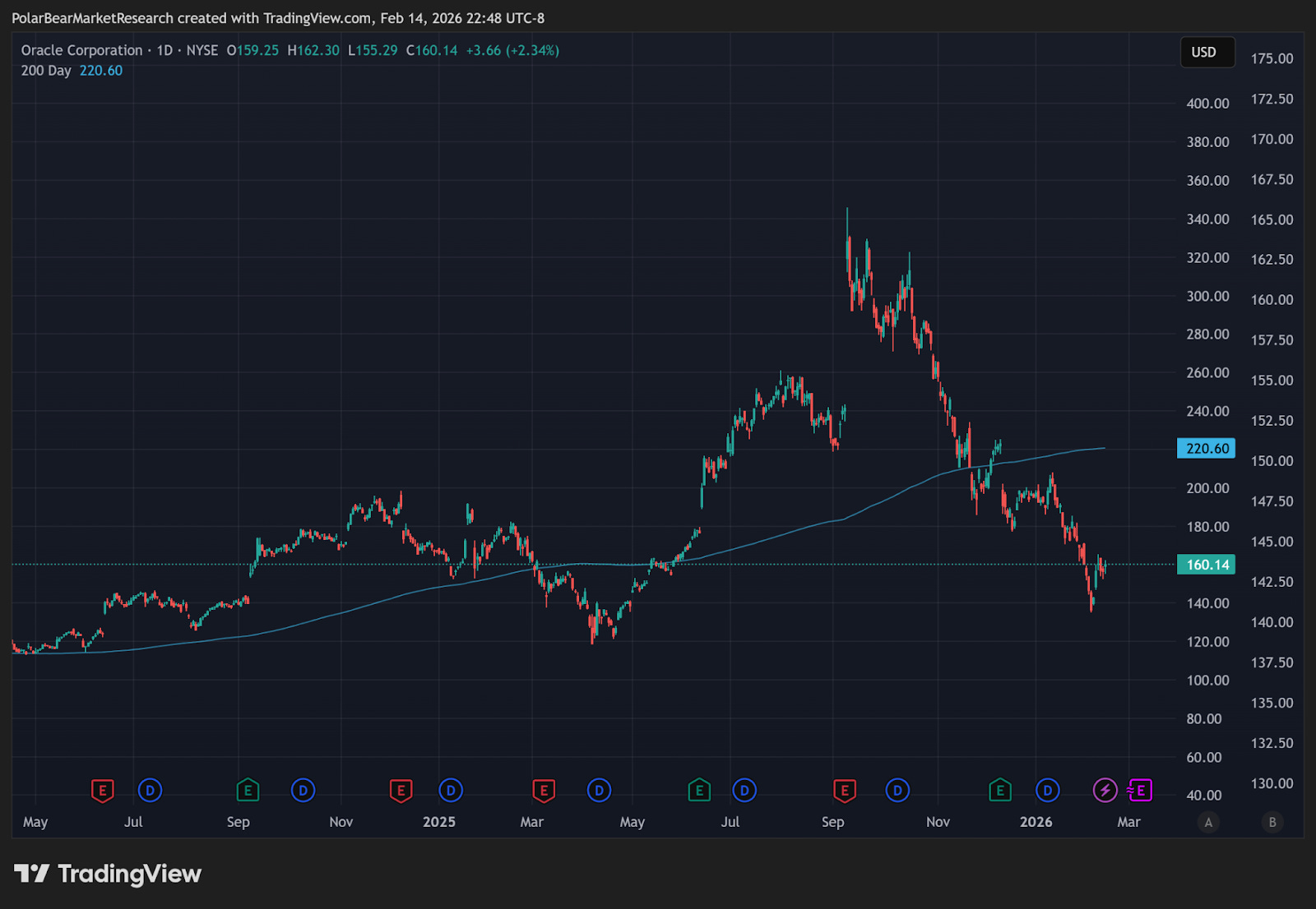 ChatGPT & AI are tracking similar search trends - and both notably peaked around the same time that the Nasdaq did, even though the more narrow bubble baskets have continued to push higher. Also note that not all ‘AI’ names have been treated equally… just recall the Oracle smashing, which now actually looks to be finding a slightly more solid footing in the mid-100 range:
