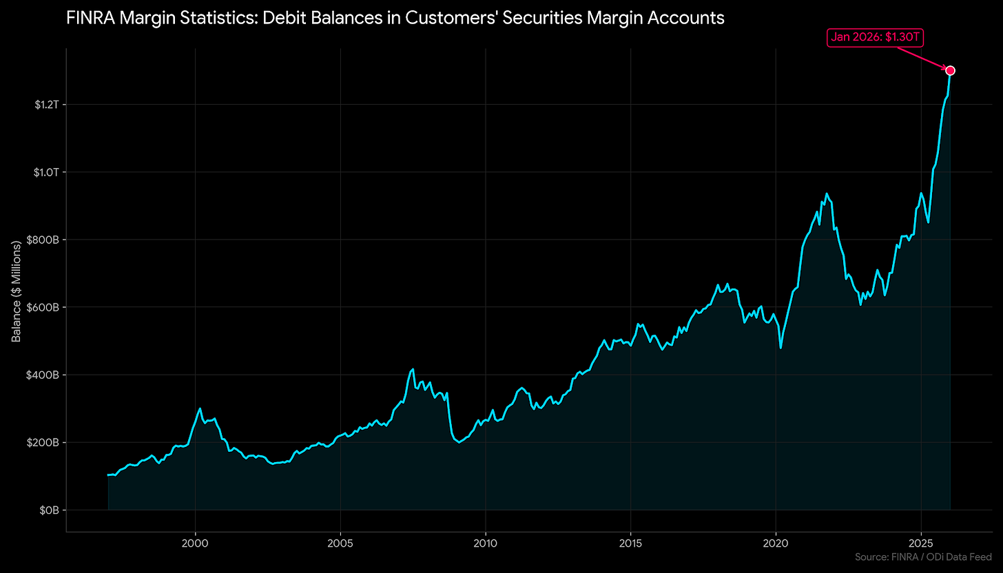 This single indicator is a reliable topping indicator - and even though the absolute top is not an *absolute* warning signal - past cycles are pretty clearly indicative of the usefulness of margin in predicting downside action in the broader equity markets. With the advent of new ways to gamble and speculate for everyone from restaurant waiters to those sporting the ‘broccoli’ hairstyles on TikTok, I would keep a close eye on this indicator for the entirety of 2026.