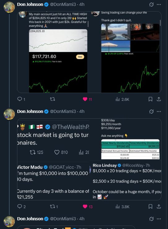 I was astounded by the ‘For You’ feed on the MacroEdge page, this was just scrolling down over a 10-minute period: