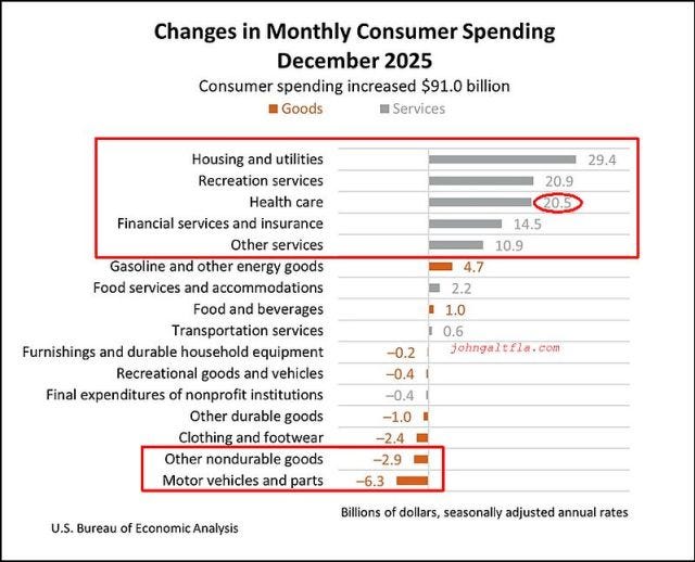 So if consumer spending increased but most of it was spent on services, that begs several questions. For example as highlighted above, the CPI report via the BLS indicated declining health insurance and other medical costs yet somehow it’s the third highest expense for consumers?