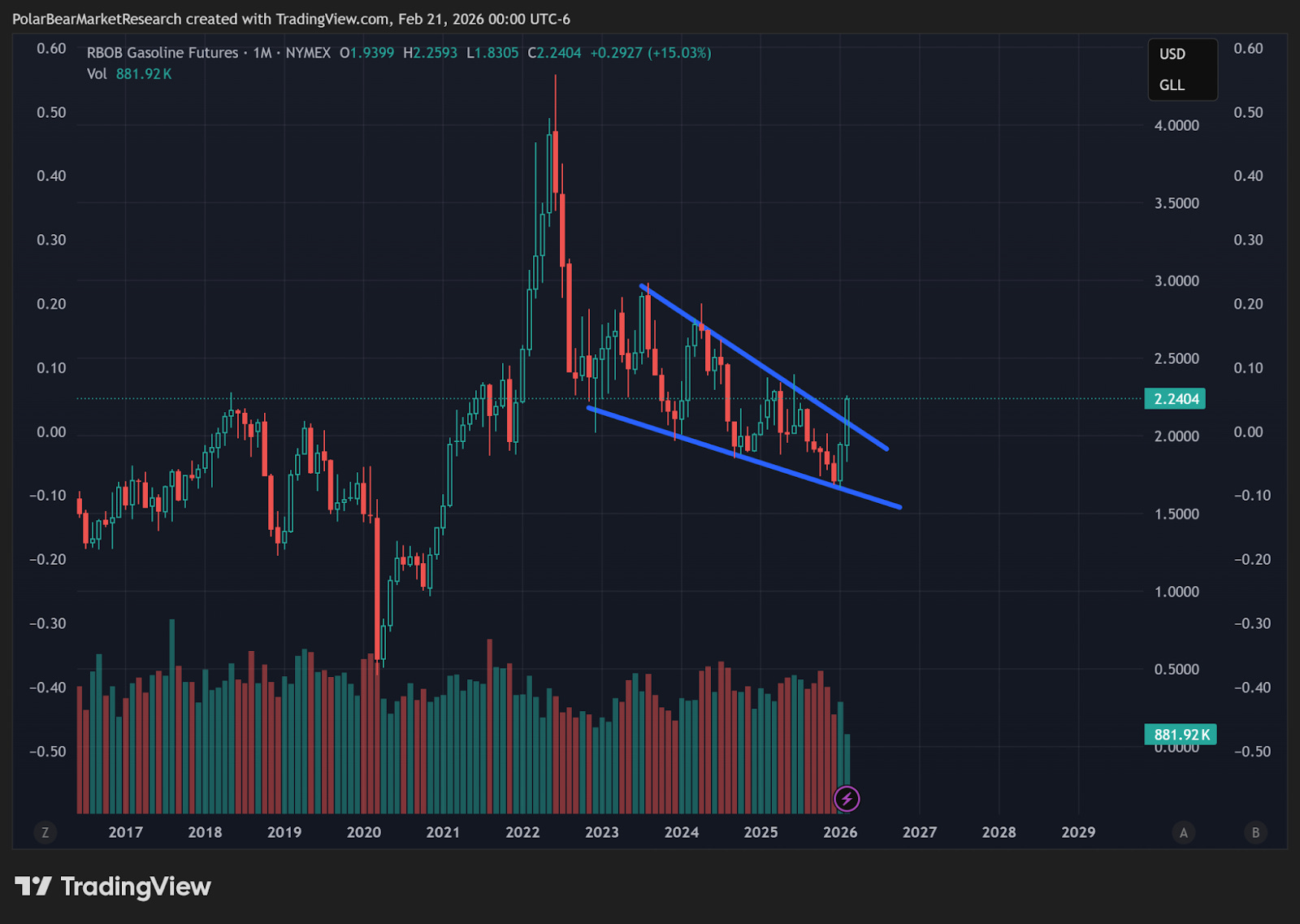 While the 2026 consensus is strongly against higher oil and gasoline prices, consensus is where our differentiation theme goes to die. There are plenty of momentum factors that could easily push prices higher from here: geopolitical risk, tighter OPEC discipline, an SPR floor, shale and drilling discipline (we’re seeing some of this finally), & demand resiliency in developing/EM countries.