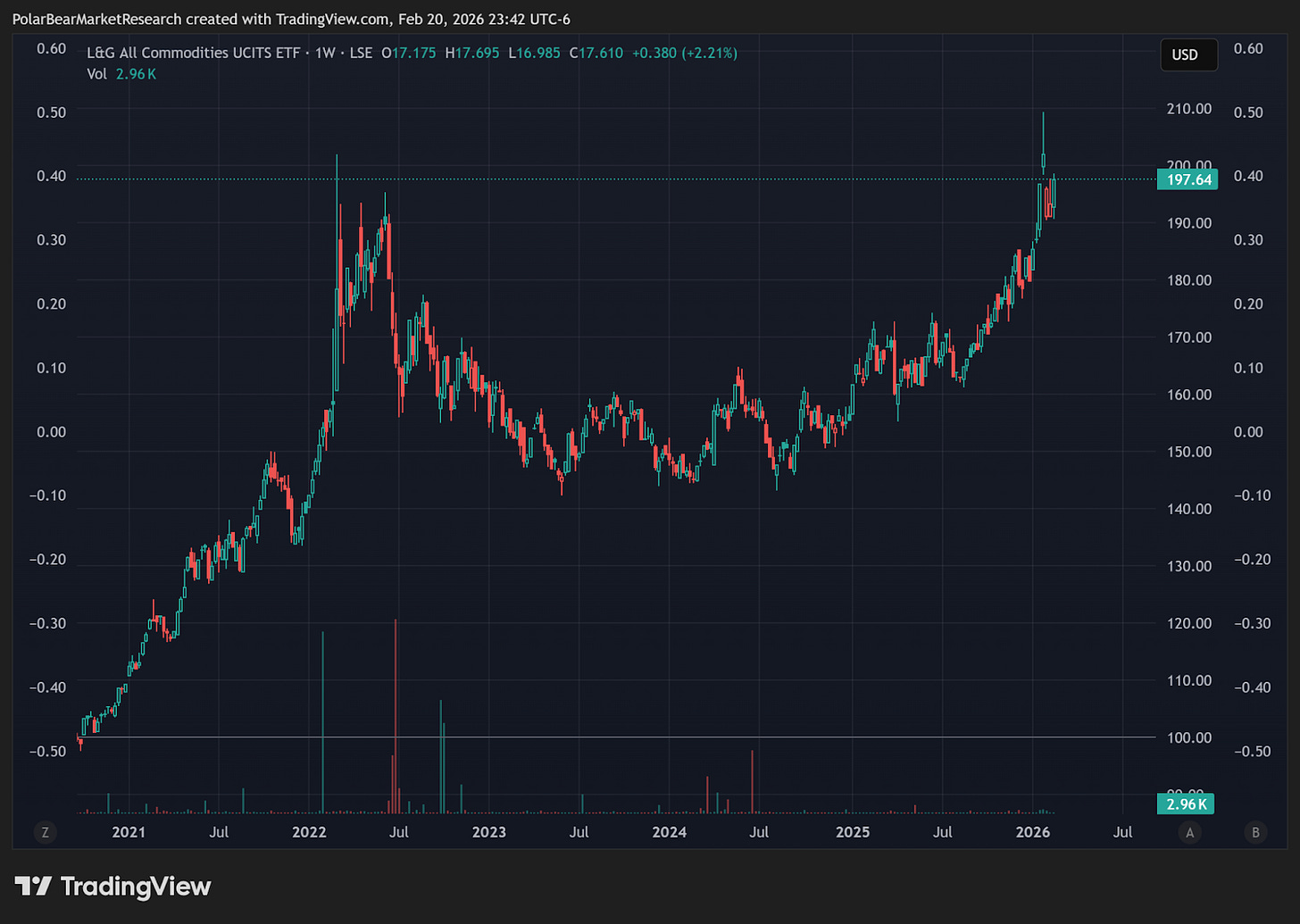 As a follow-up to yesterday evening and our theme of differentiation for the year, I continue to seek out less sought-after opportunities this year from a return standpoint. While everyone is chasing things like memory & data centers (as well as the entire AI thematic that I still believe will crash & burn to a scale we haven’t seen since the Dotcom bust) - the commodity basket continued to advance higher today after a brief pullback over the last 2 weeks: