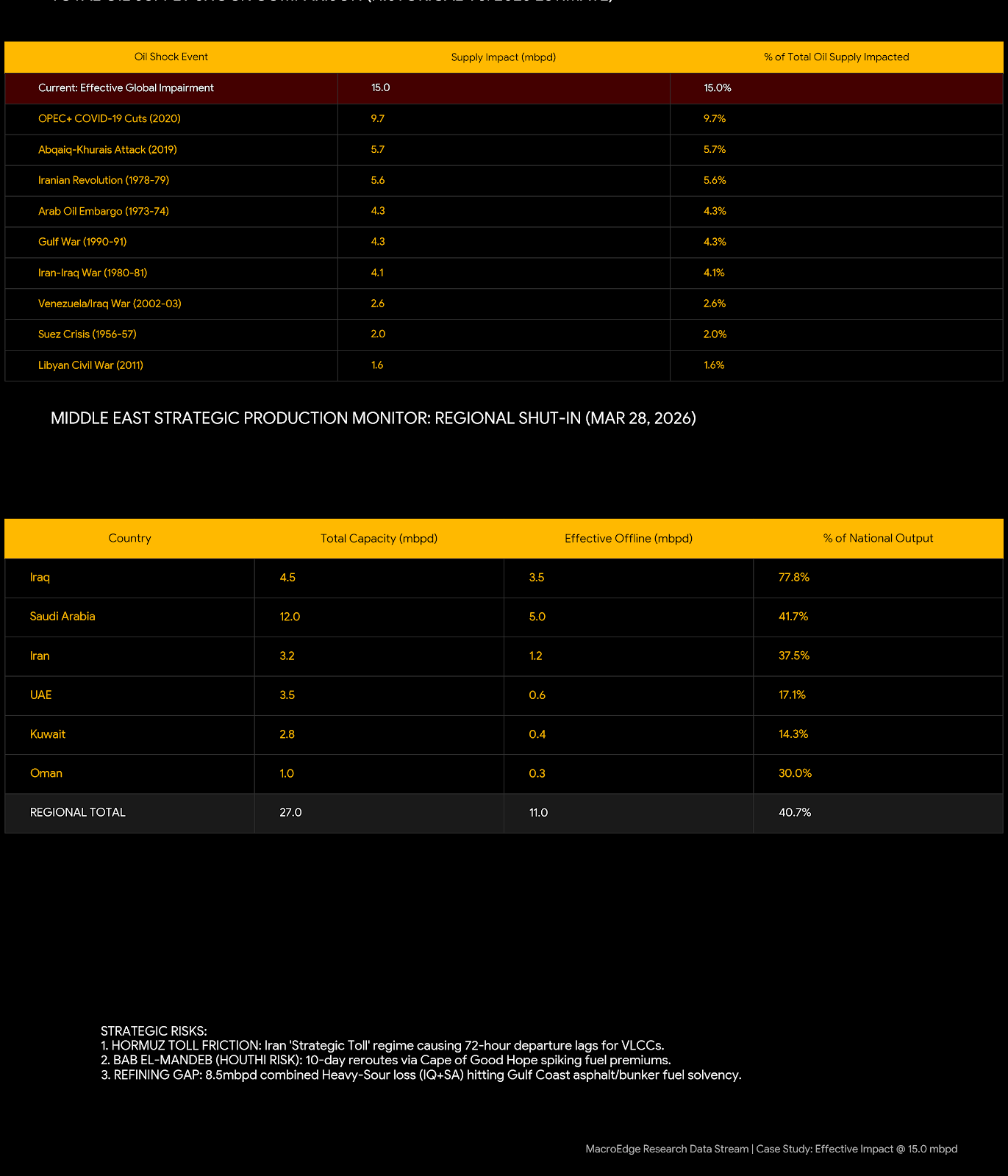 In the Middle East, Iraq has almost 80% of national output shut-in, while Saudi has about 5mbpd, and Iran, and Oman slot into the third and fourth places in the region. The situation is going to continue to be fluid, so stay tuned to our latest monitor updates on the outages.
