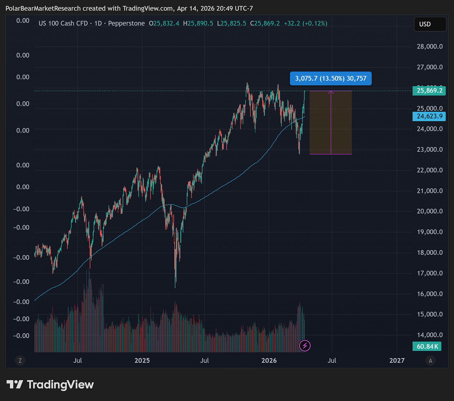 As promised, I am back with another Macro Note in the ‘War Note’ series to discuss the latest developments in the Israel-Iran war, which has seen so much noise over the last 72-96 hours that it’s hard to discern what is real and what is not. After the gap up in oil prices on Sunday evening in the futures session - that quickly reversed - and the past two days, we again entered a ‘melt-up’ mode, and we’re now 13.5% off of the lows on the Nasdaq: