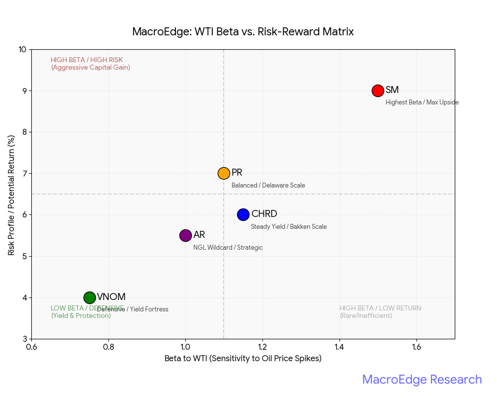 CHRD exhibits a high-convexity payoff profile relative to WTI due to its pure-play Williston Basin exposure and an oil-dominant production mix (approximately 57% crude). With a 10-year inventory of low-breakeven assets ($< $40/BBL), the enterprise operates as a high-margin cash flow engine with significant operating leverage.