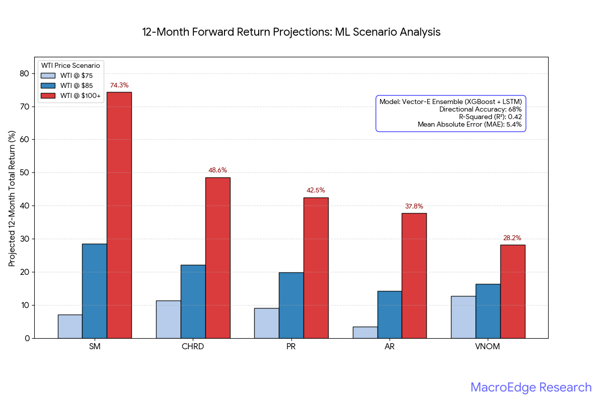 Mean Absolute Error (MAE): $5.4\%$ (Tight error variance for 12-month returns)