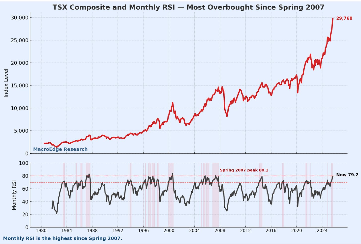 The TSX in Canada is its most overbought since Spring 07 on the monthly:
