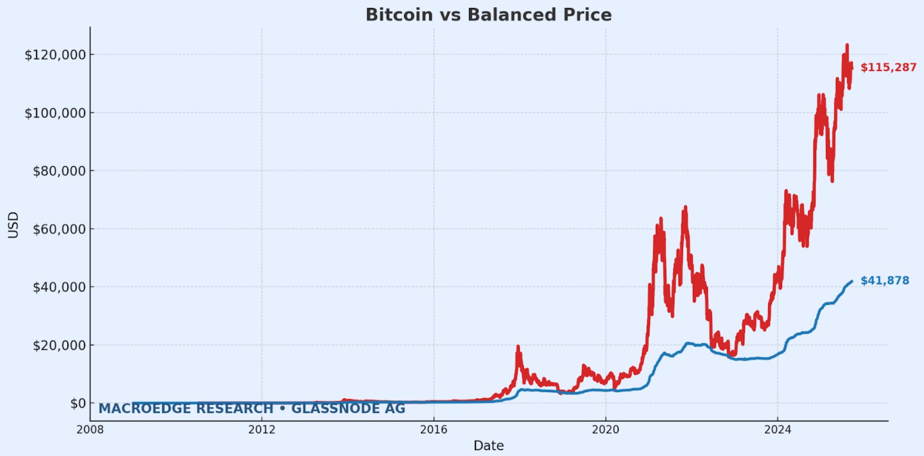 In our data deep dive from last evening - another interesting metric that caught my eye, Bitcoin v it’s balanced price: