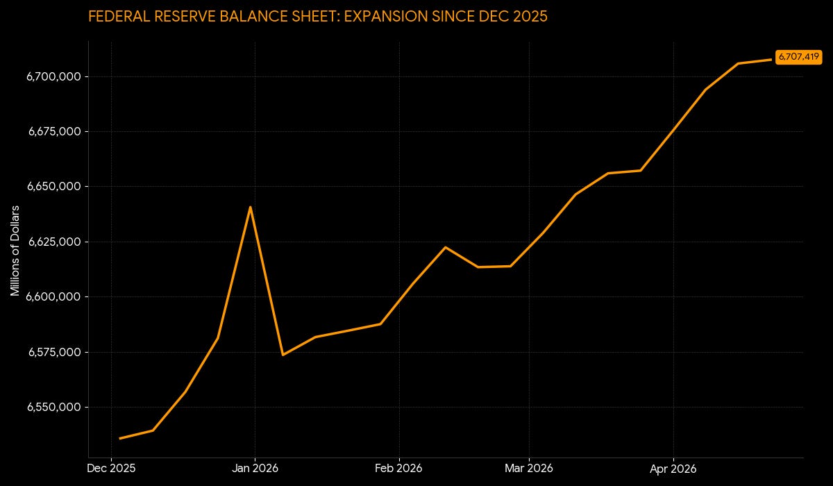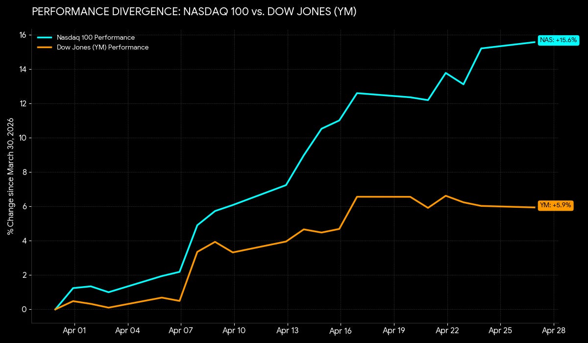 The Administration continues to lean into boosting nominal asset prices - and the climb that we’re seeing now is something out of 99, the KOSPI of a few months ago, and Japan in the late 80s. These unprecedented times are causing us to run out of instances and comparisons - and the rate at which things are climbing continues to accelerate. There are a lot of explanations being offered for why equity markets have essentially shifted to the ‘vertical only’ move, with the Nasdaq rising over 20% in a matter of weeks, and semiconductors over 40% MTD - a move only rivaled by 2000. The simplest explanation is that we continue to find ourselves in one of the most pro nominal asset price regimes that we’ve ever seen, which is unlikely to end until the Strait of Hormuz situation actually begins to cause demand destruction (if at all during the ‘big print’). For the time being, we have the Treasury close to a form of YCC to control the 10-30Y yields, and I do not think that Warsh is going to be hawkish in any way, shape, or form.