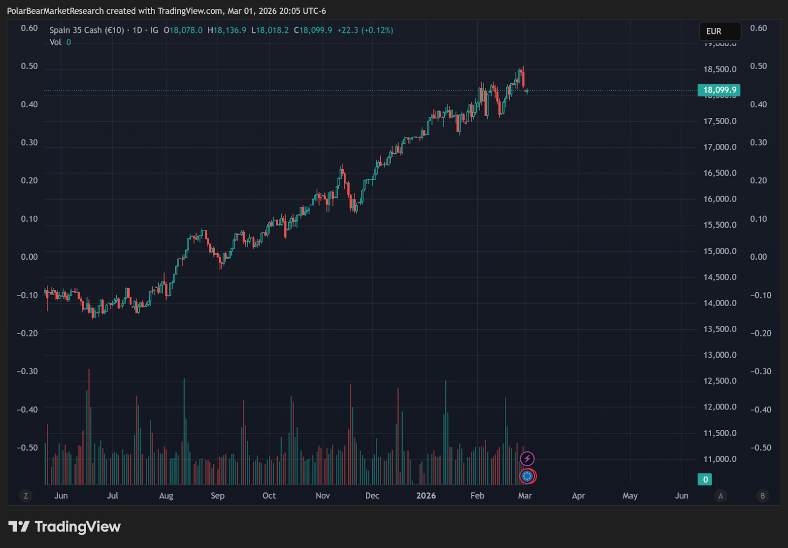 The Spanish circus continues… and remains my top Nasdaq signal for the time being… when Spain breaks, US tech will be in a much worse position.
