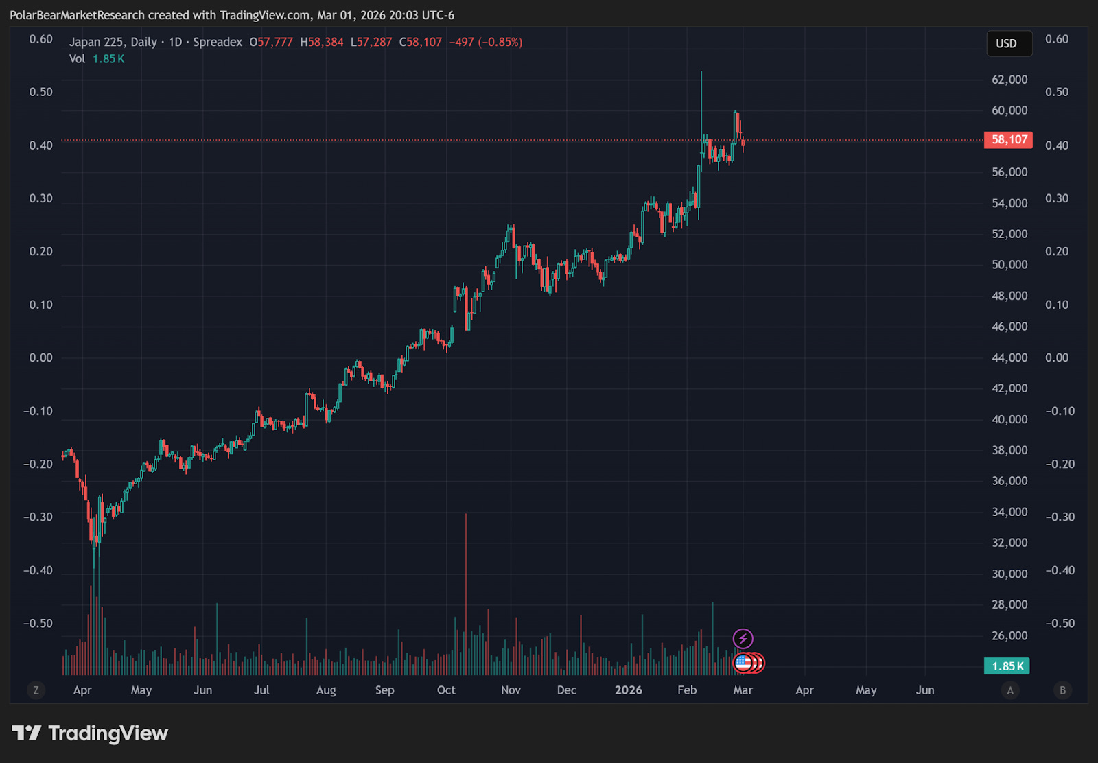 Japan (Nikkei) / Korea (KOSPI) are key correlations with the US AI bubble, and thus far have not displayed signs of cracking.