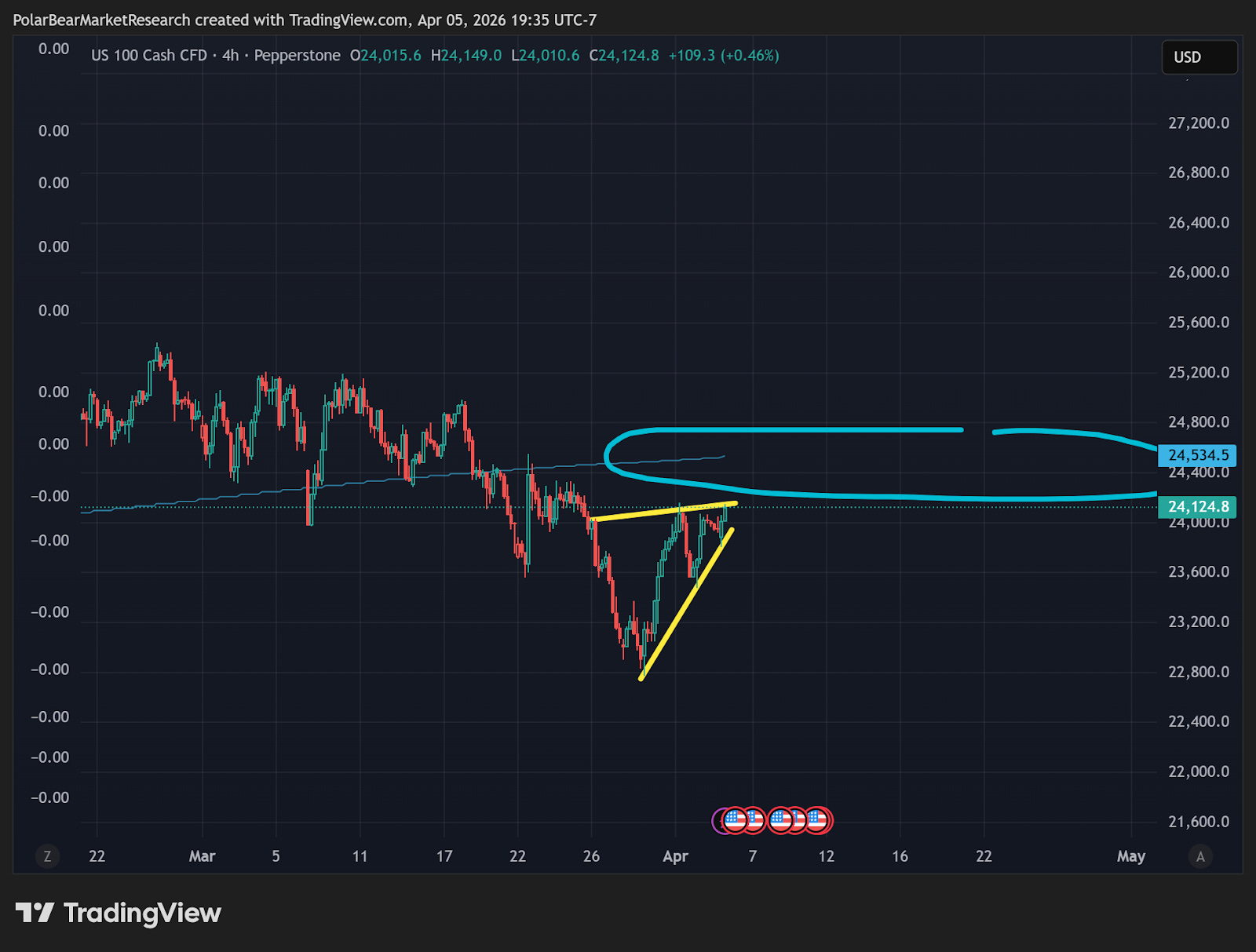 This very short-term uptrend (on the 4hr) has taken the Nasdaq higher over the last few sessions, and is continuing overnight with about a .4% gain on NQ. I would take anything with a grain of salt until the President provides the next updates to action in Iran, given the situation with the Strait of Hormuz.